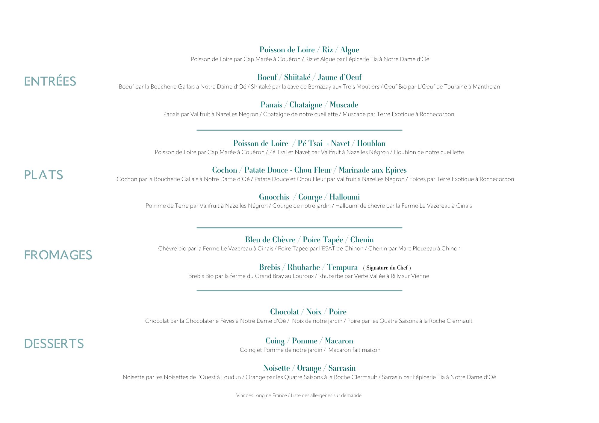 Menu Carte blanche, créé par le chef selon son inspiration,